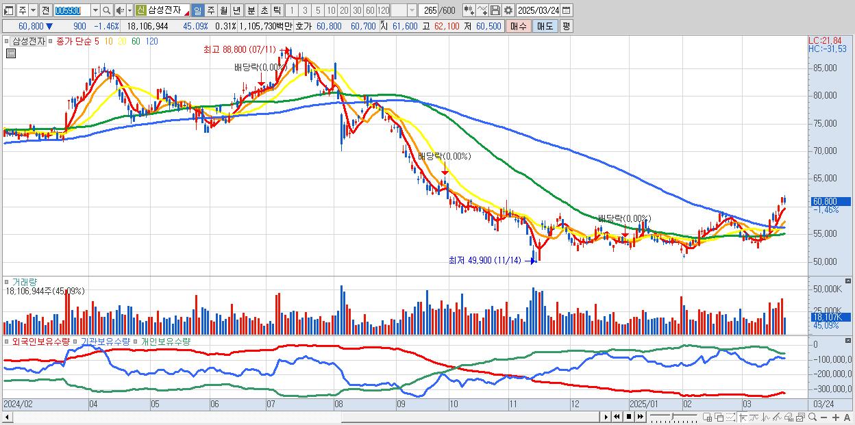 1.삼성전자 60,500원 ▼ -1.94% (KOSPI, 005930)