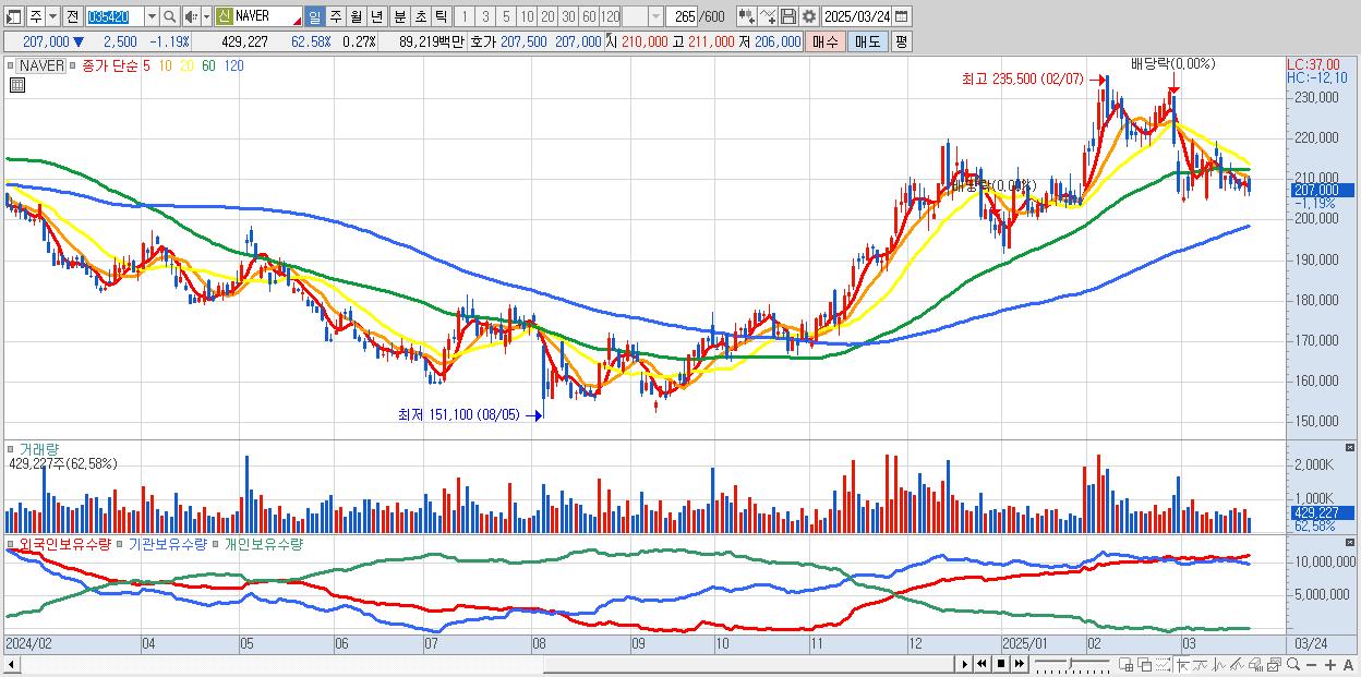 30.NAVER 207,000원 ▼ -1.19% (KOSPI, 035420)