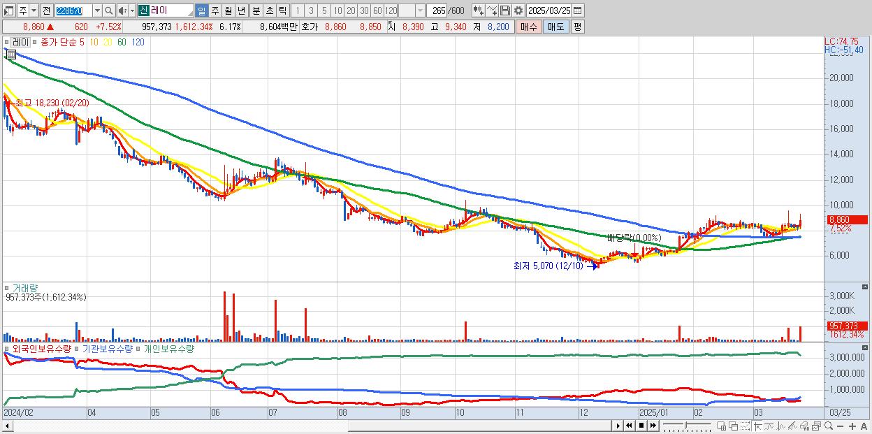 30.레이 8,860원 ▲ 7.52% (KOSDAQ, 228670)