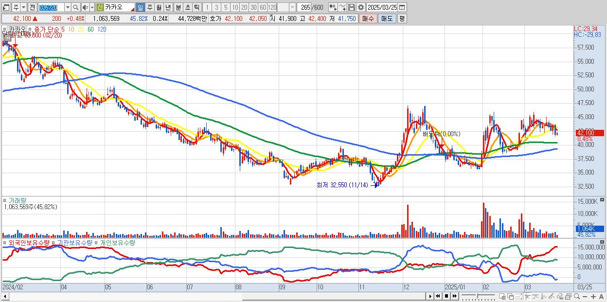 30.카카오 42,200원 ▲ 0.72% (KOSPI, 035720)
