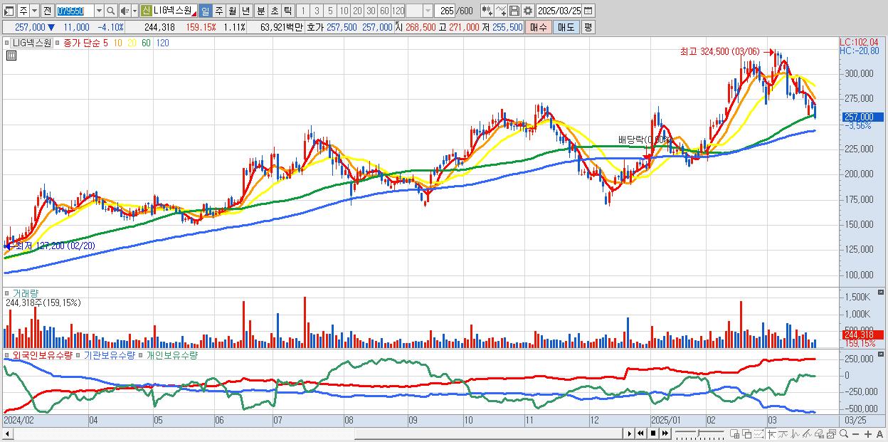 | 2025-03-19 | 250억 | -2억 | 216억 | 61억 | -524억 |