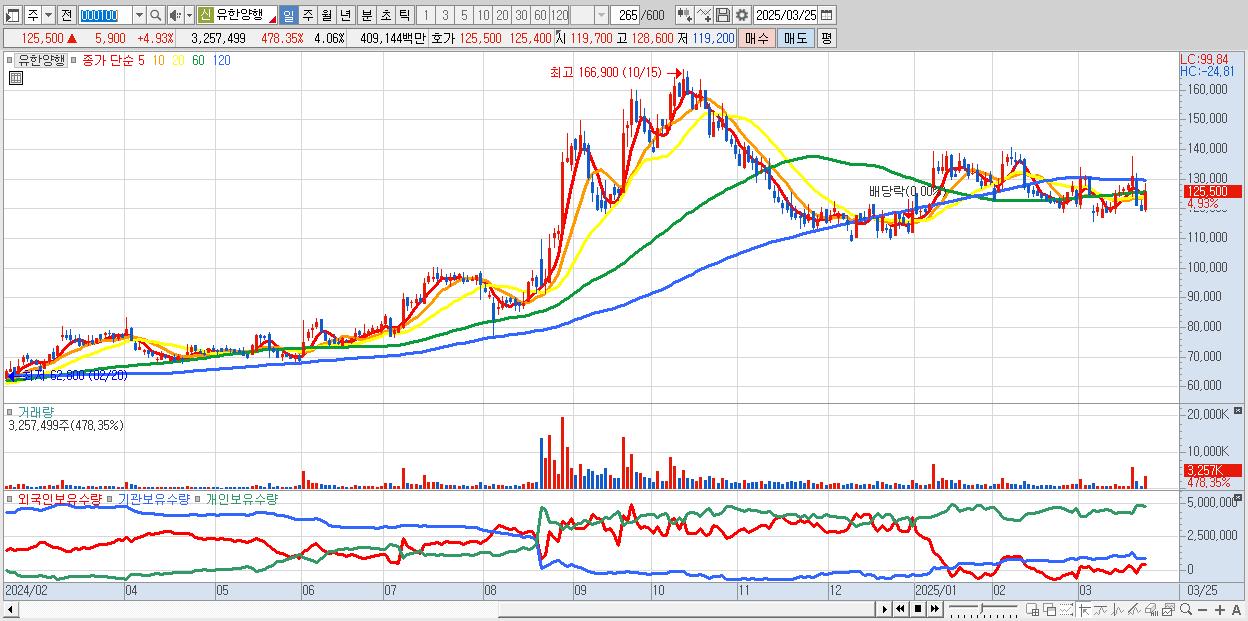 - 유한양행 (125,800원 ▲ 5.18% , 시총: 100,903억, 외국인 순매수 거래금:47억)