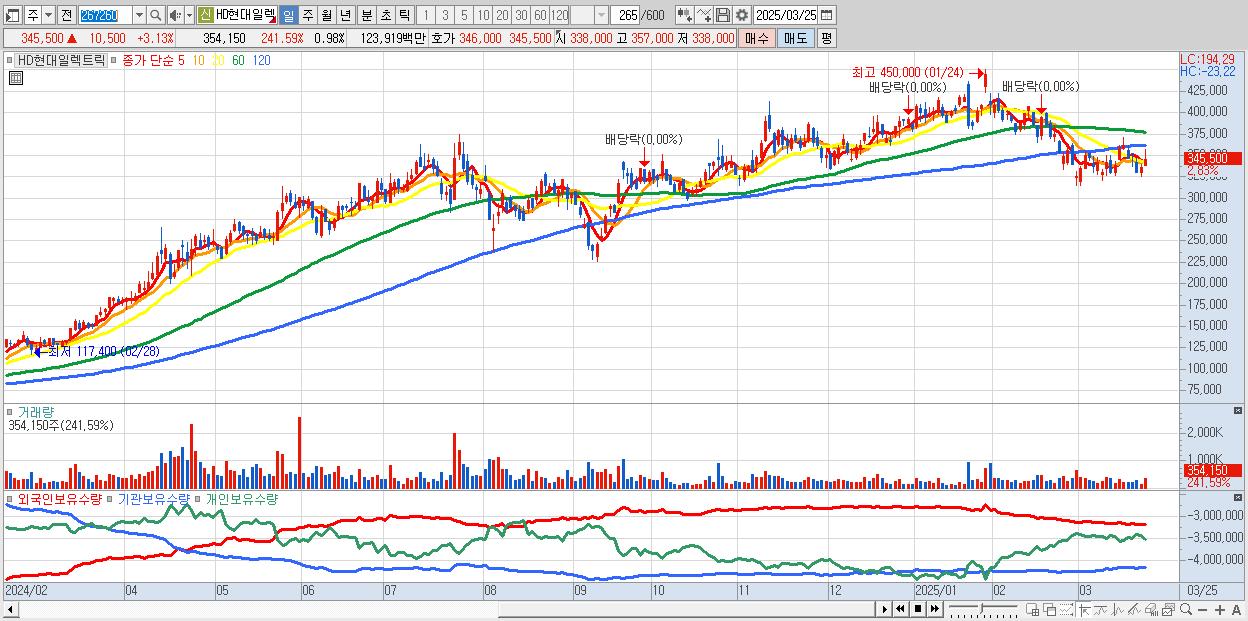 - HD현대일렉트릭 (347,000원 ▲ 3.58% , 시총: 125,084억, 외국인 순매수 거래금:179억)
