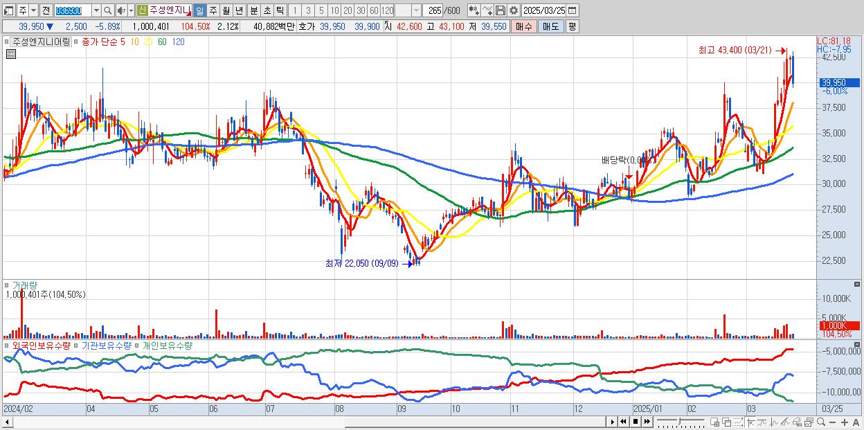 - 주성엔지니어링 (40,200원 ▼ -5.3% , 시총: 19,002억, 외국인 순매수 거래금:80억)