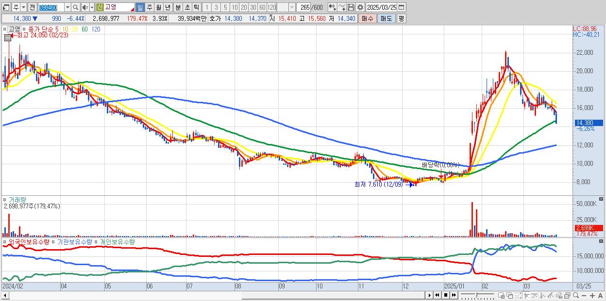 - 고영 (14,450원 ▼ -5.99% , 시총: 9,921억, 외국인 순매수 거래금:93억)