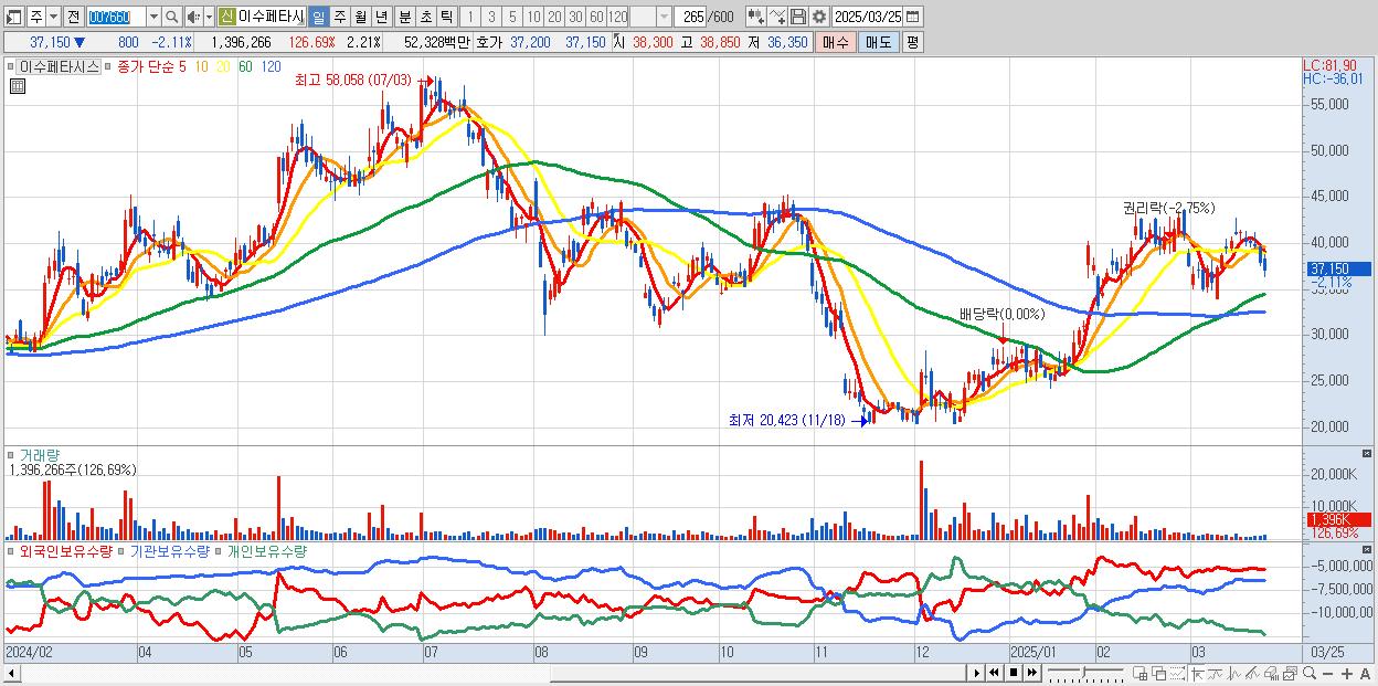 - 이수페타시스 (37,150원 ▼ -2.11% , 시총: 23,496억, 외국인 순매수 거래금:107억)