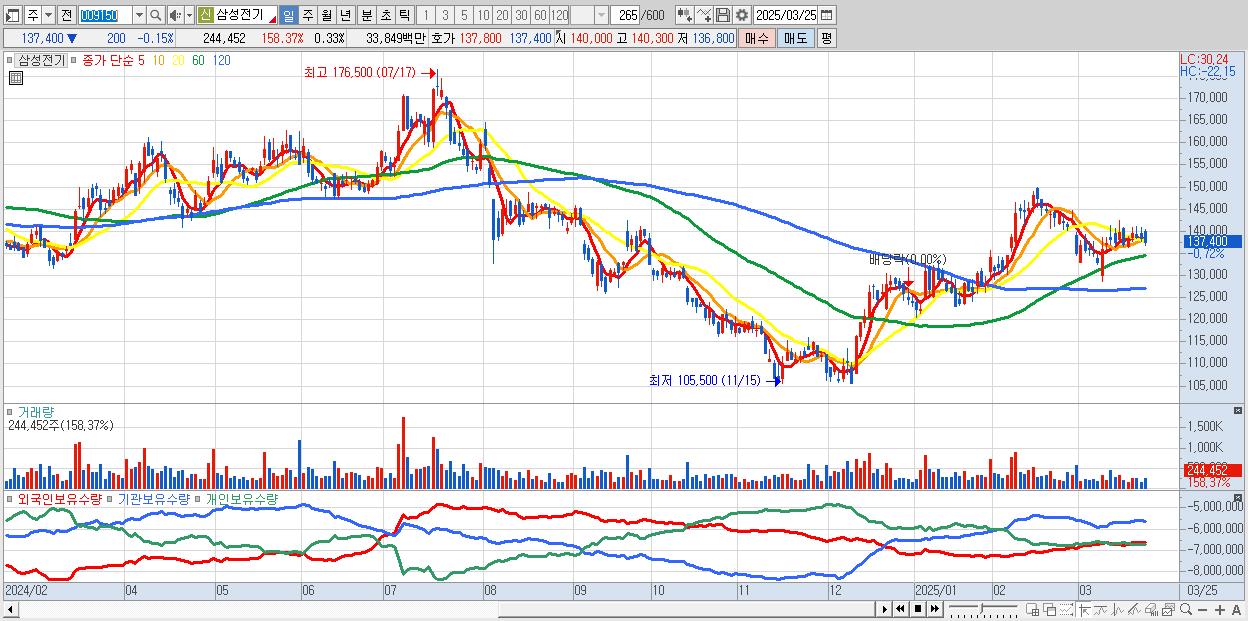 - 삼성전기 (137,600원 0% , 시총: 102,779억, 외국인 순매수 거래금:45억)