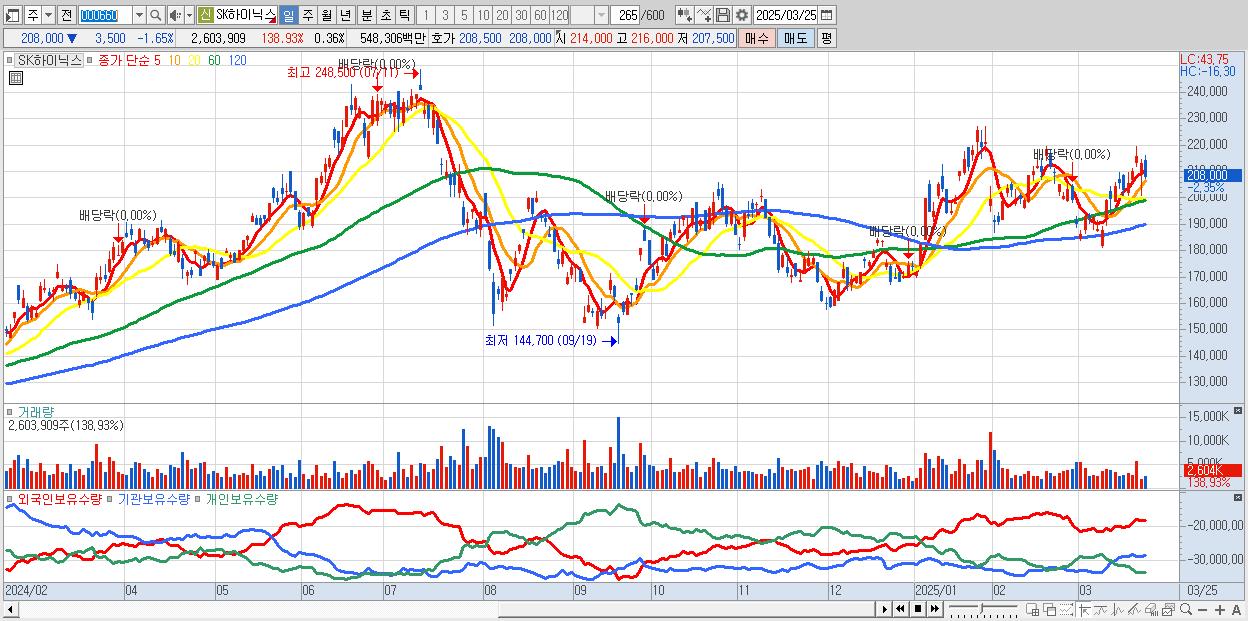 2.SK하이닉스 208,000원 ▼ -1.65% (KOSPI, 000660)