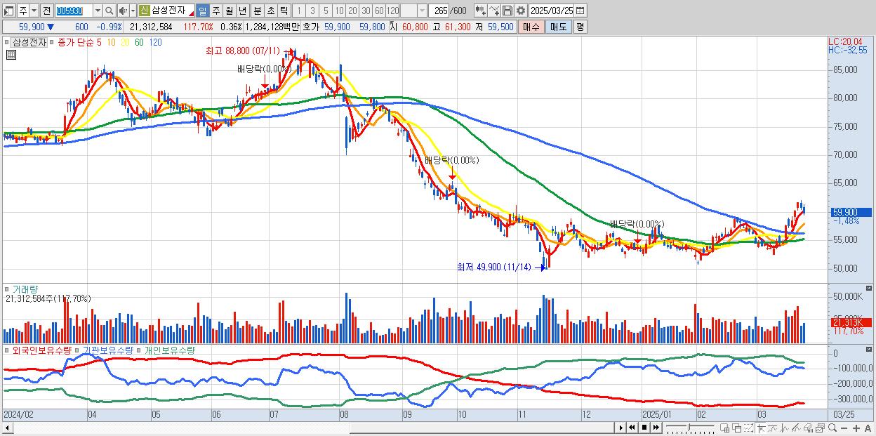 1.삼성전자 59,800원 ▼ -1.16% (KOSPI, 005930)