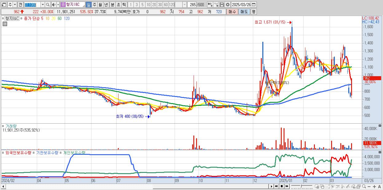2.형지I&C 962원 ▲ 30% (KOSDAQ, 011080)