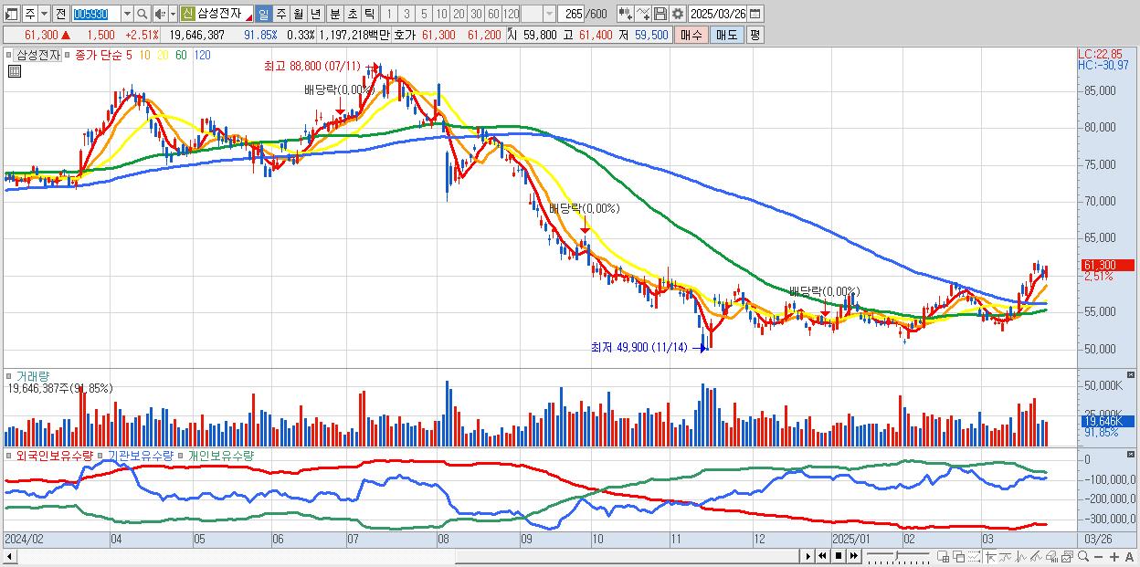 1.삼성전자 61,400원 ▲ 2.68% (KOSPI, 005930)
