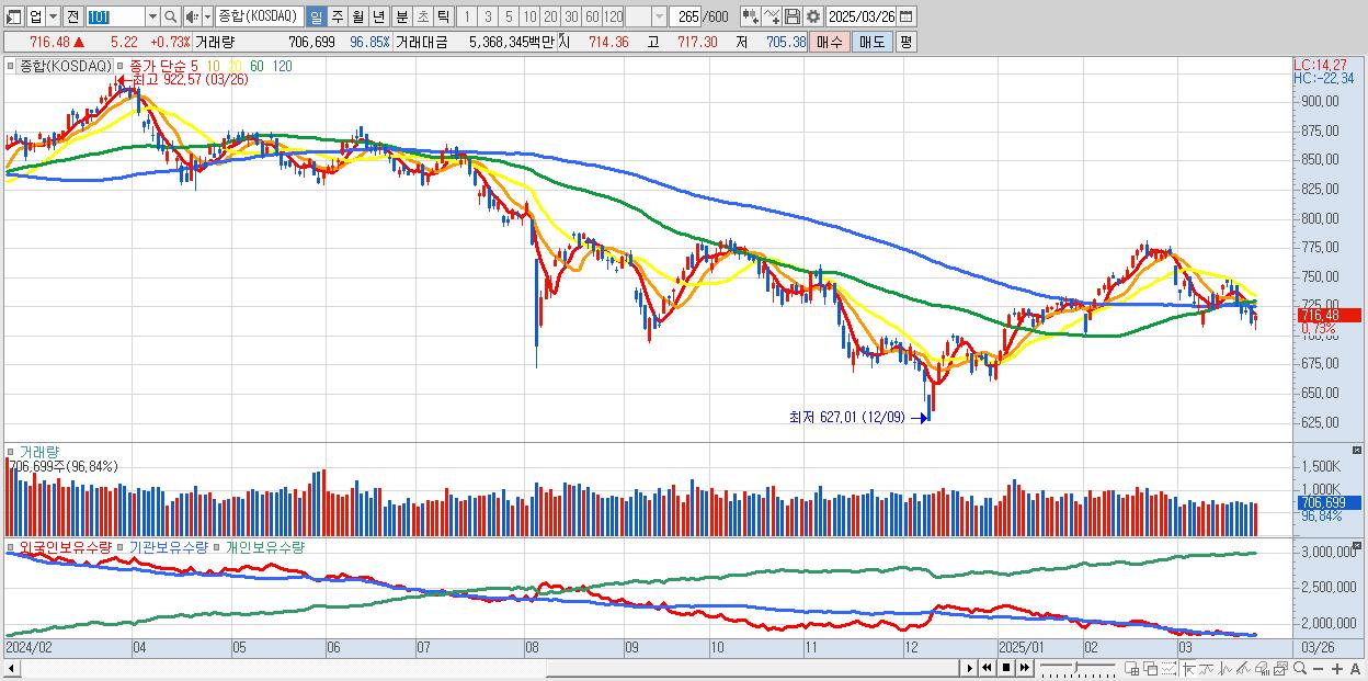 | 03/26 | 716.48 | ▲0.73% | -1,362억 | 641억 | 718억 | 3억 |