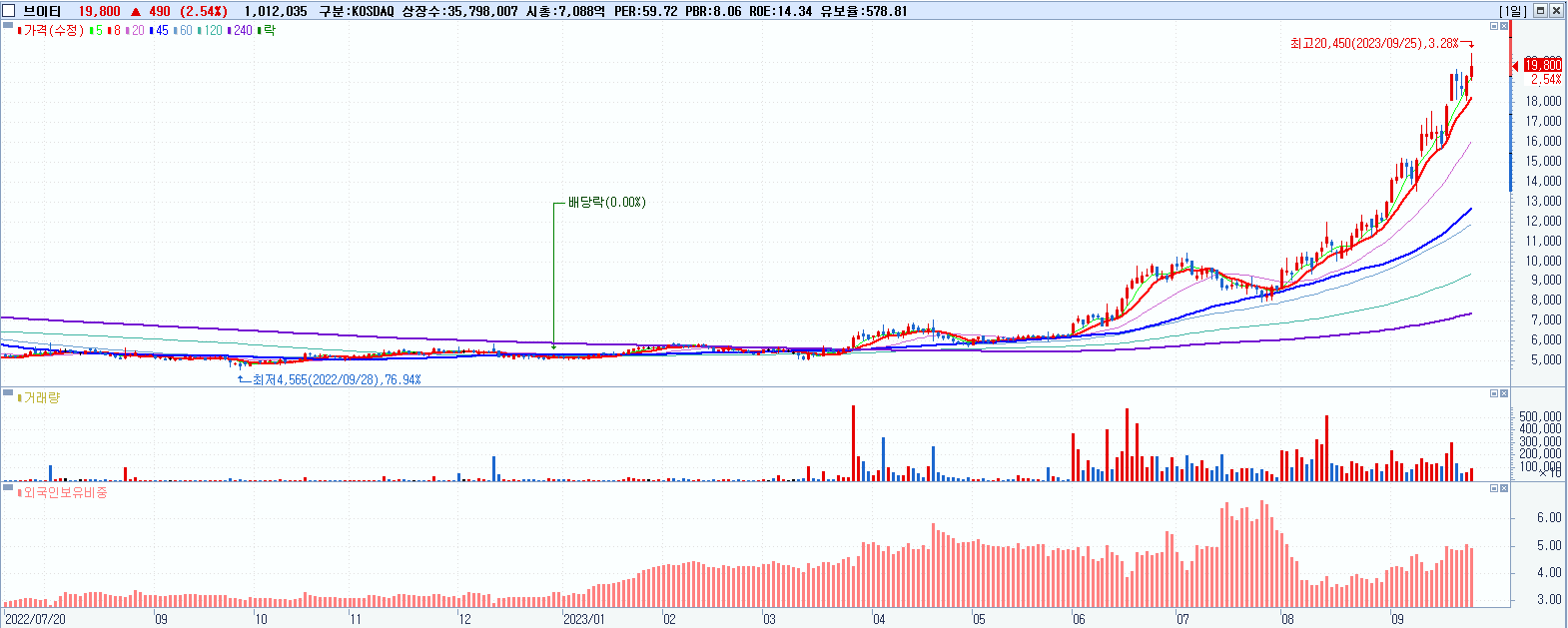 - 브이티 (19,800원 ▲ 2.54% , 시총: 7,088억, 거래량: 1,012,035, 거래대금:201억, KOSDAQ)