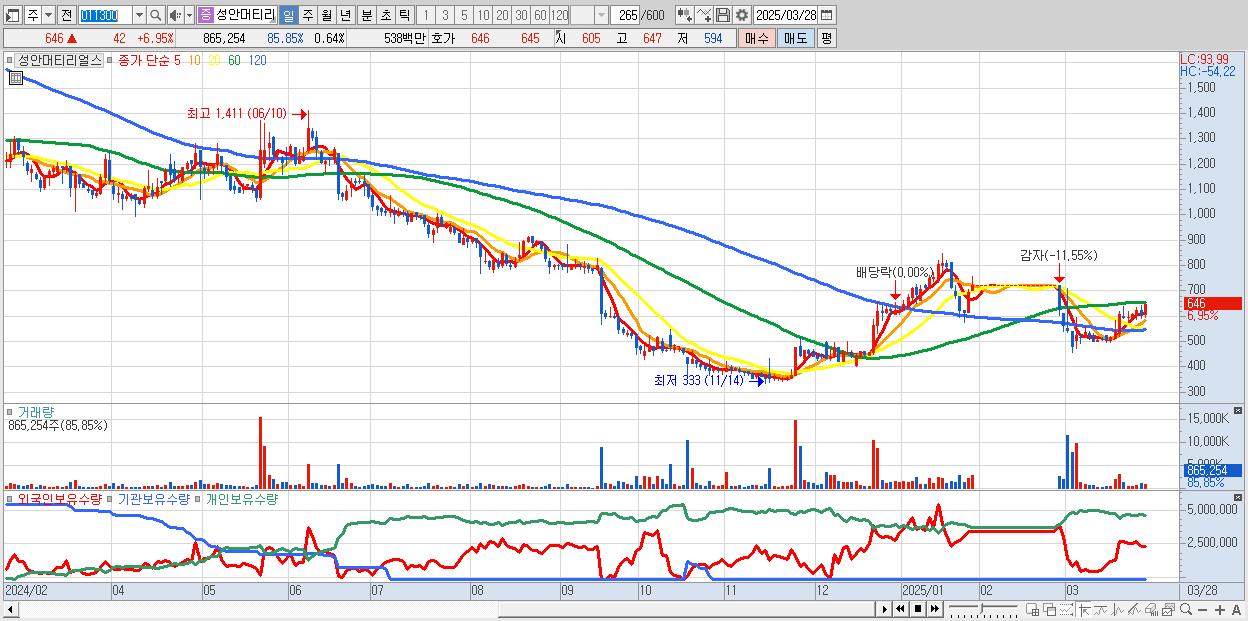 29.성안머티리얼스 646원 ▲ 6.95% (KOSPI, 011300)
