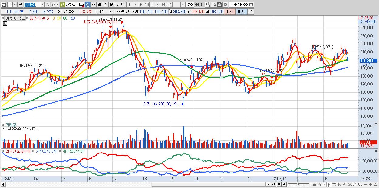 2.SK하이닉스 199,300원 ▼ -3.72% (KOSPI, 000660)
