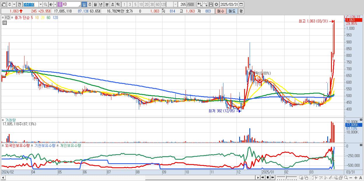 2.KD 1,063원 ▲ 29.95% (KOSDAQ, 044180)