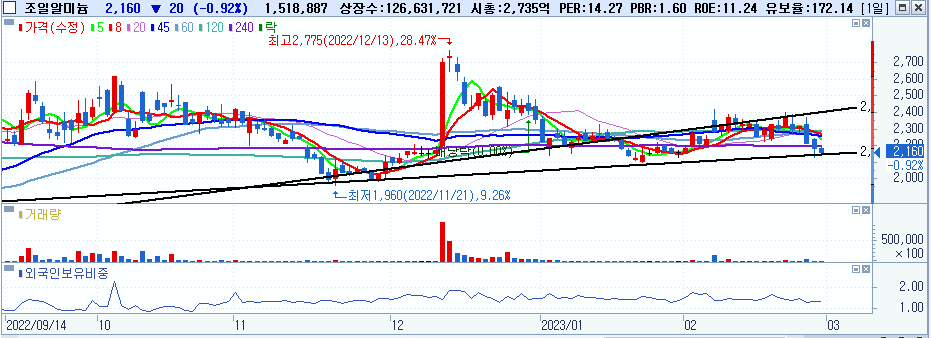 | 조일알미늄 주가 2023년 2월 6일 (0) | 2023.02.06 |