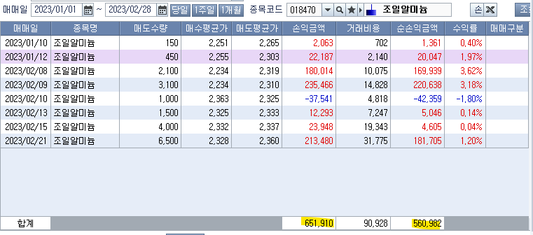 약 두달간 조일알미늄으로 매매한 결과!!!