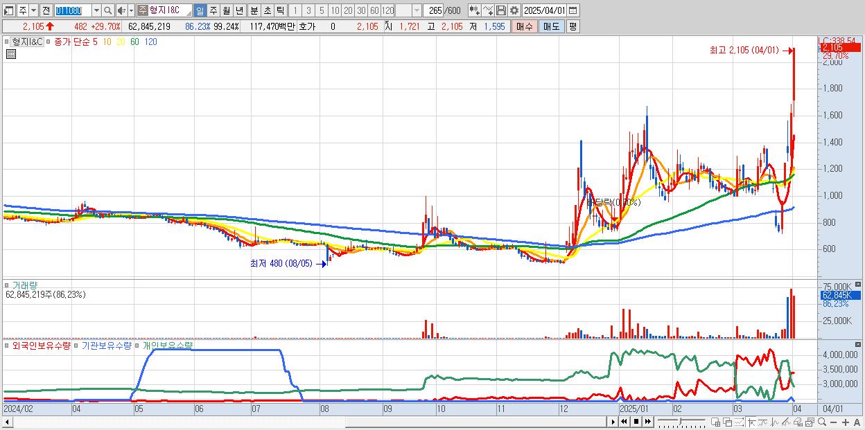 시총: 5,132억 거래량: 1,207,054 거래대금:704억 업종:건설