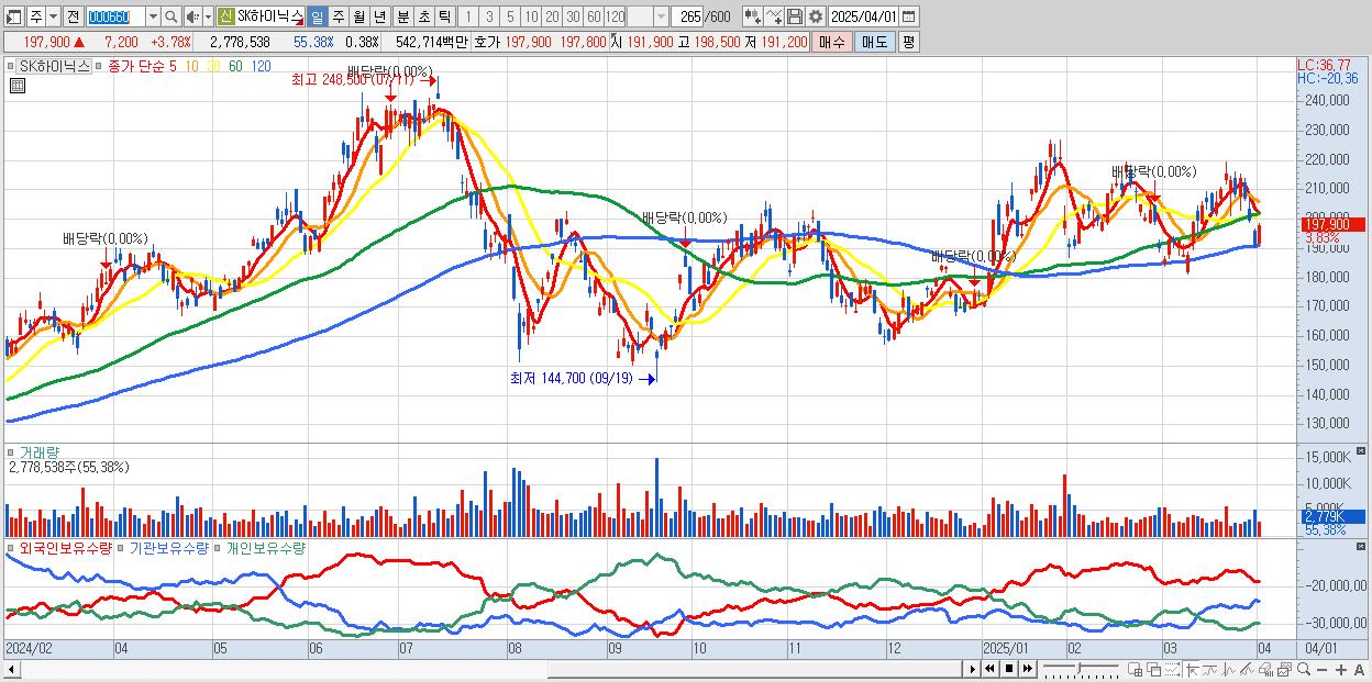 - SK하이닉스 (197,000원 ▲ 3.3% , 시총: 1,434,165억, 외국인 순매수 거래금:177억)