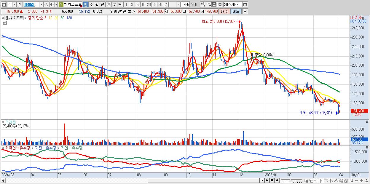 30.엔씨소프트 151,400원 ▲ 1.34% (KOSPI, 036570)