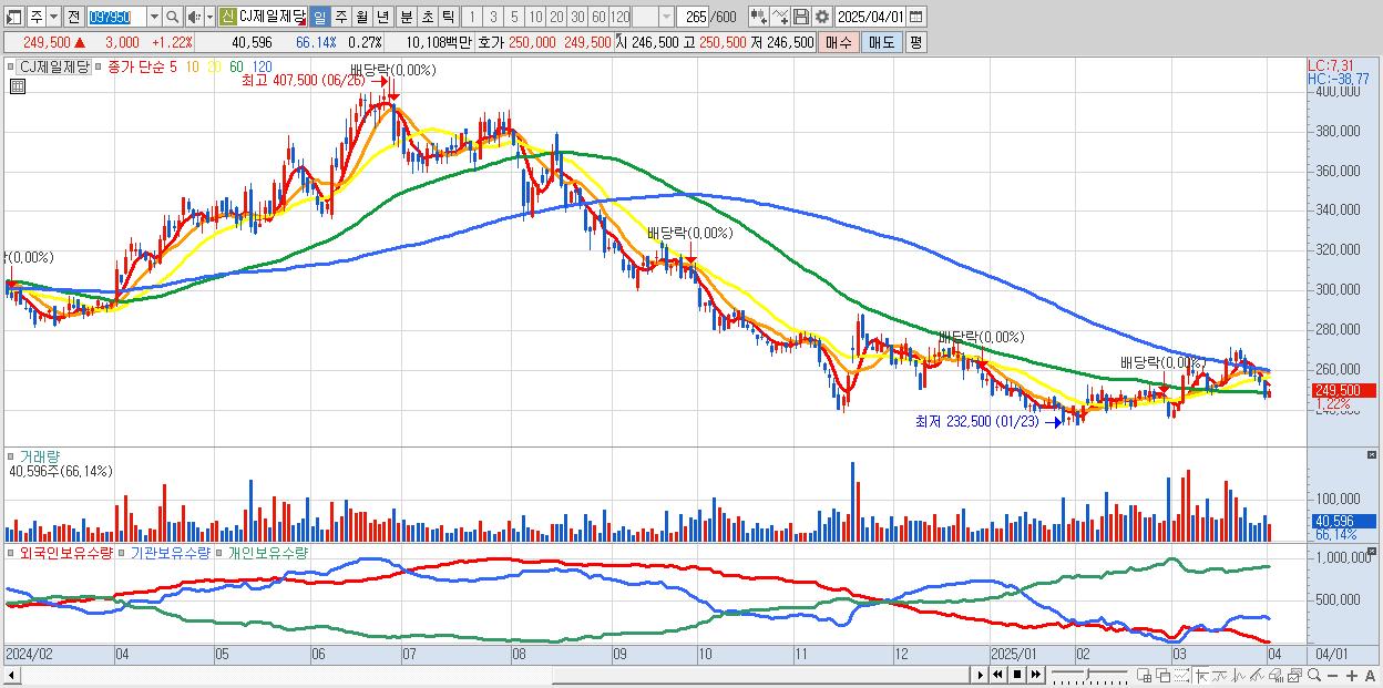 - CJ제일제당 (249,000원 ▲ 1.01% , 시총: 37,485억, 외국인 순매수 거래금:31억)