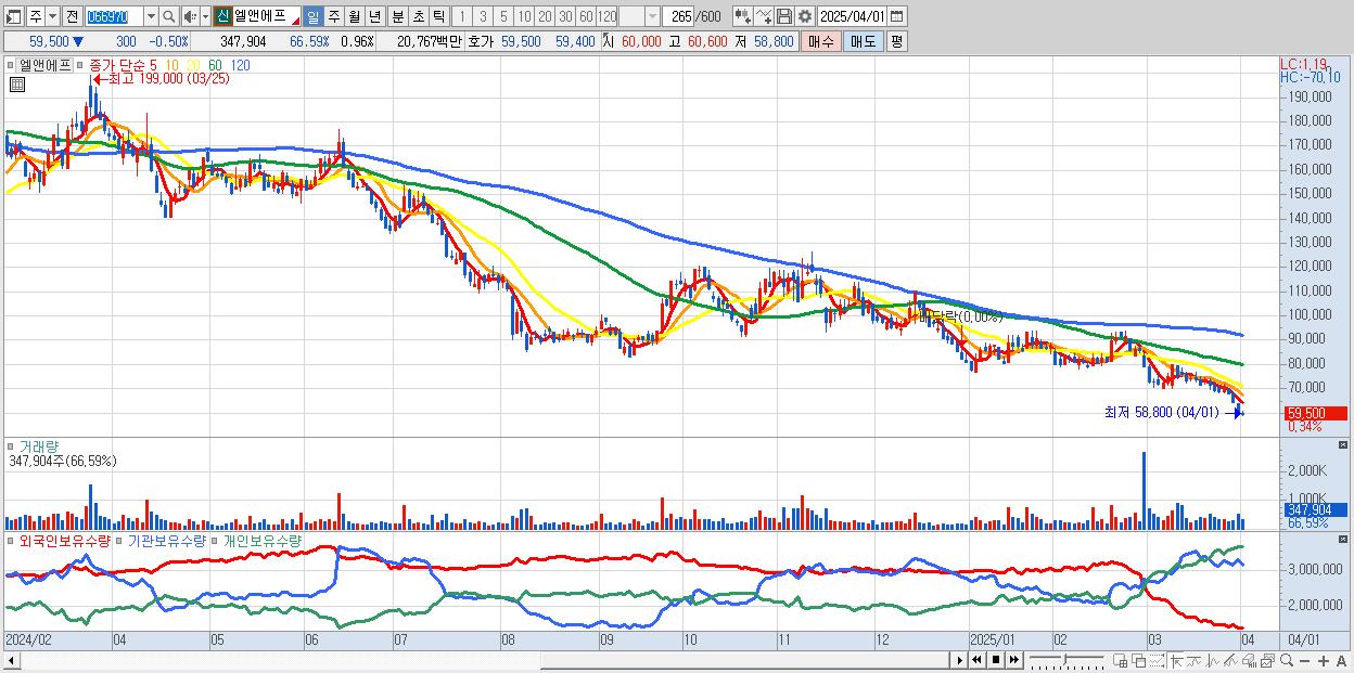 - 엘앤에프 (59,200원 ▼ -1% , 시총: 21,488억, 외국인 순매수 거래금:27억)