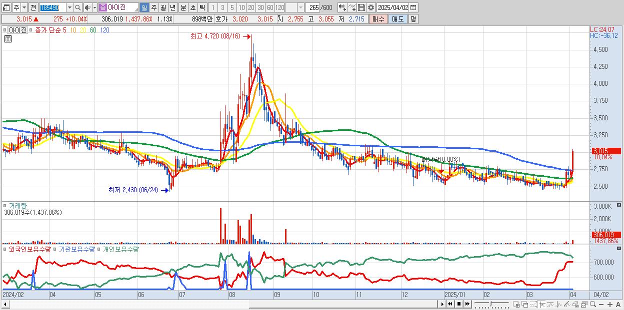 29.아이진 3,015원 ▲ 10.04% (KOSDAQ, 185490)