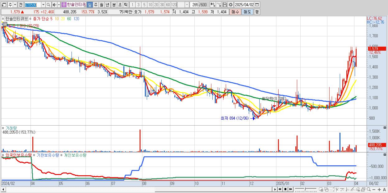 - 한솔인티큐브 (1,579원 ▲ 12.46% , 시총: 219억, 거래량: 488,205, 거래대금:8억)
