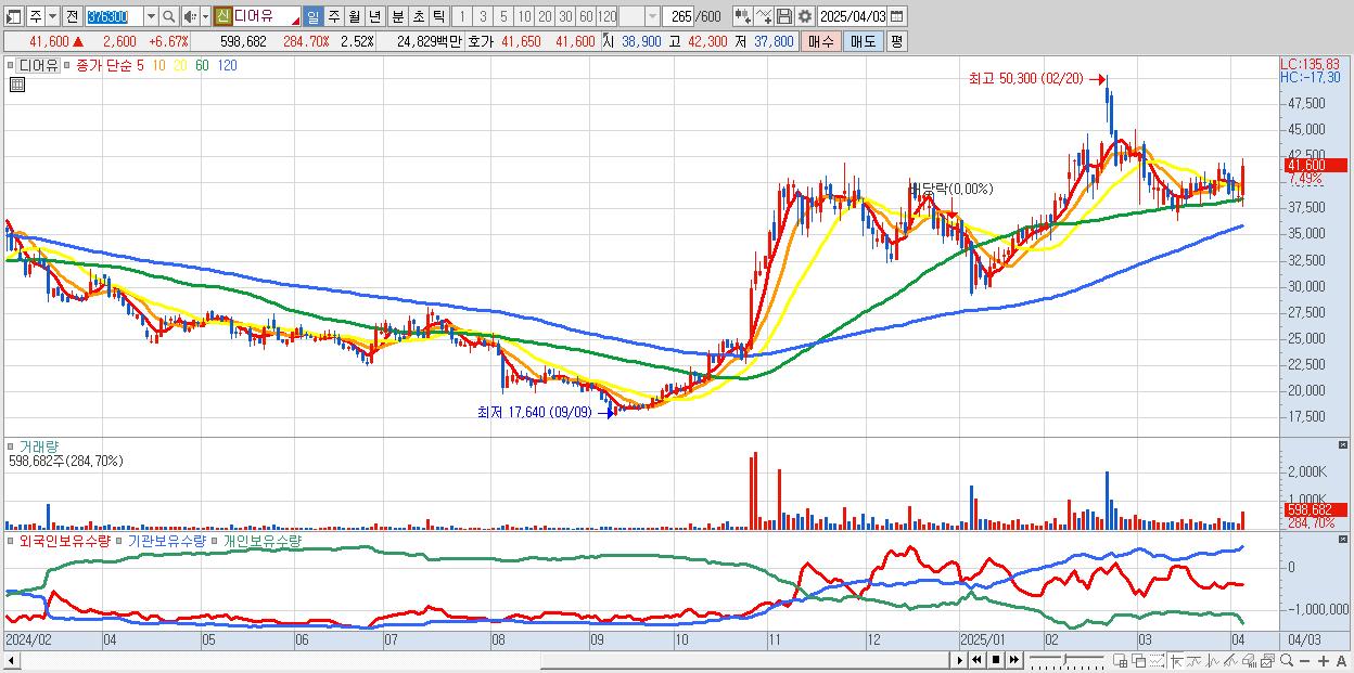- 디어유 (41,700원 ▲ 6.92% , 시총: 9,899억, 외국인 순매수 거래금:35억)