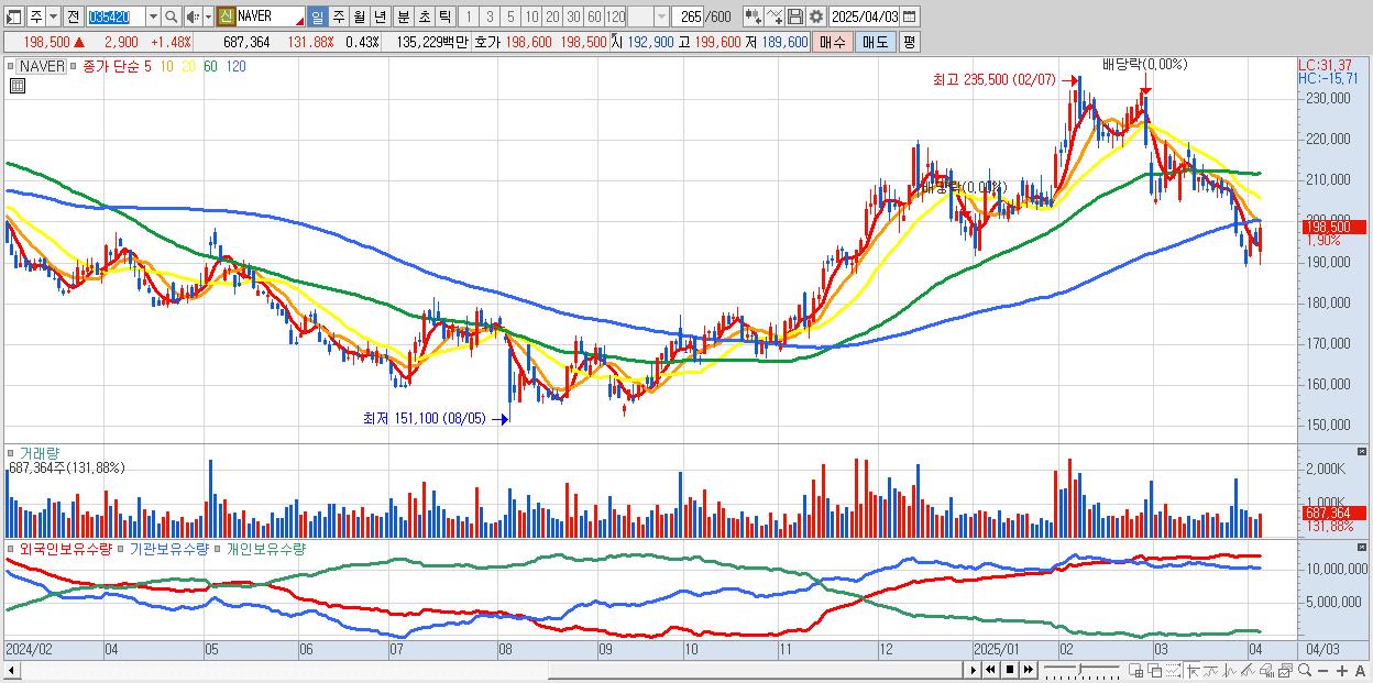 2.NAVER 198,600원 ▲ 1.53% (KOSPI, 035420)