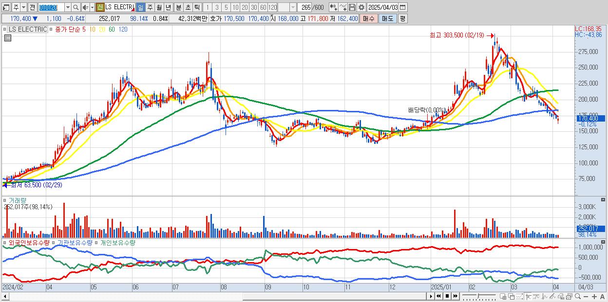 - LS ELECTRIC (170,800원 ▼ -0.41% , 시총: 51,240억, 외국인 순매수 거래금:42억)