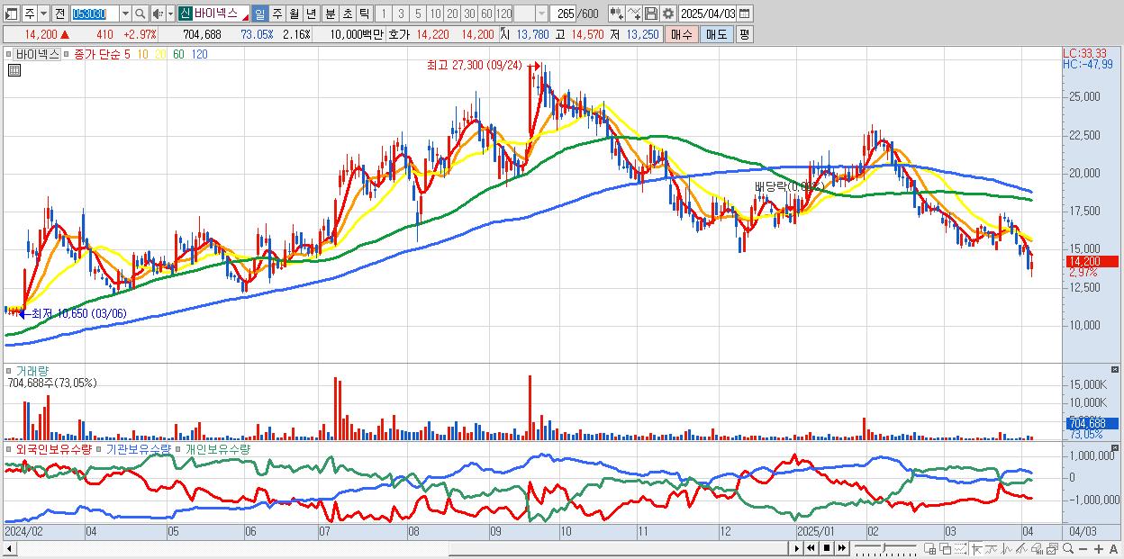 30.바이넥스 14,200원 ▲ 2.97% (KOSDAQ, 053030)