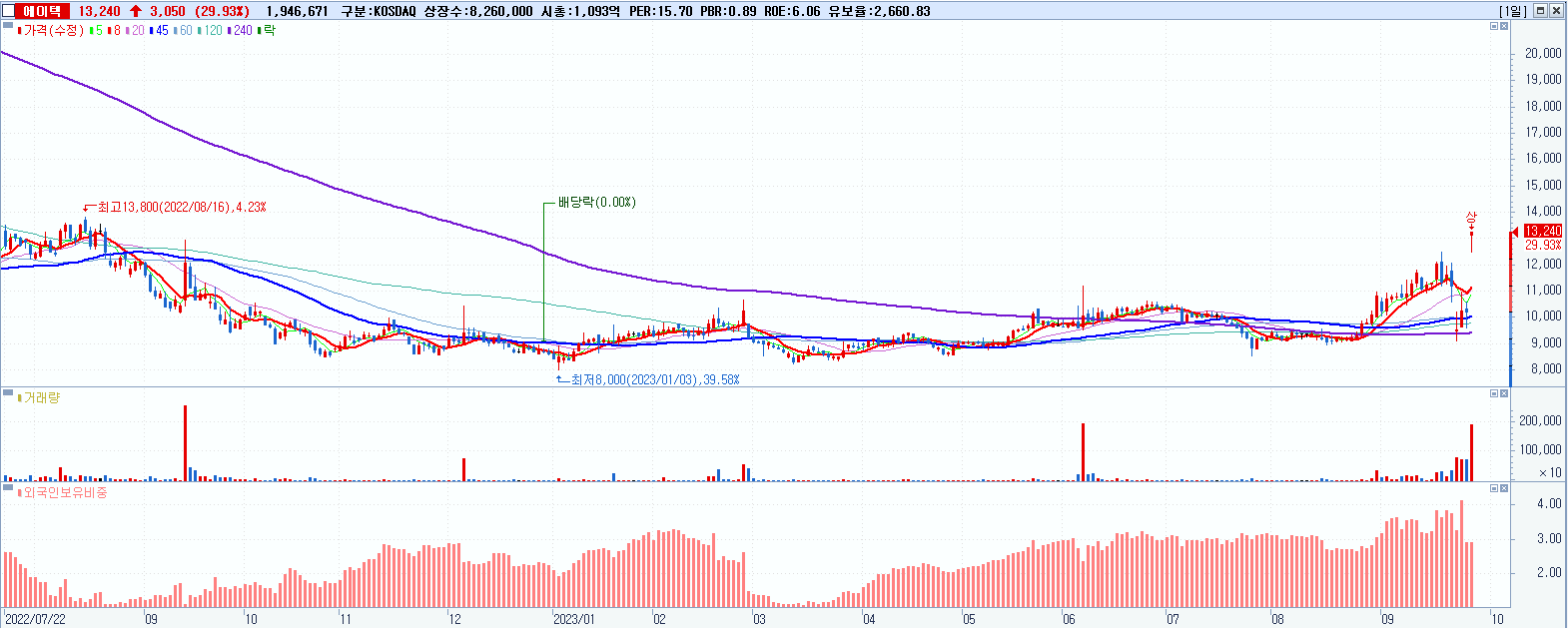 에이텍 13,240원 ▲ 29.93% (KOSDAQ, 045660)