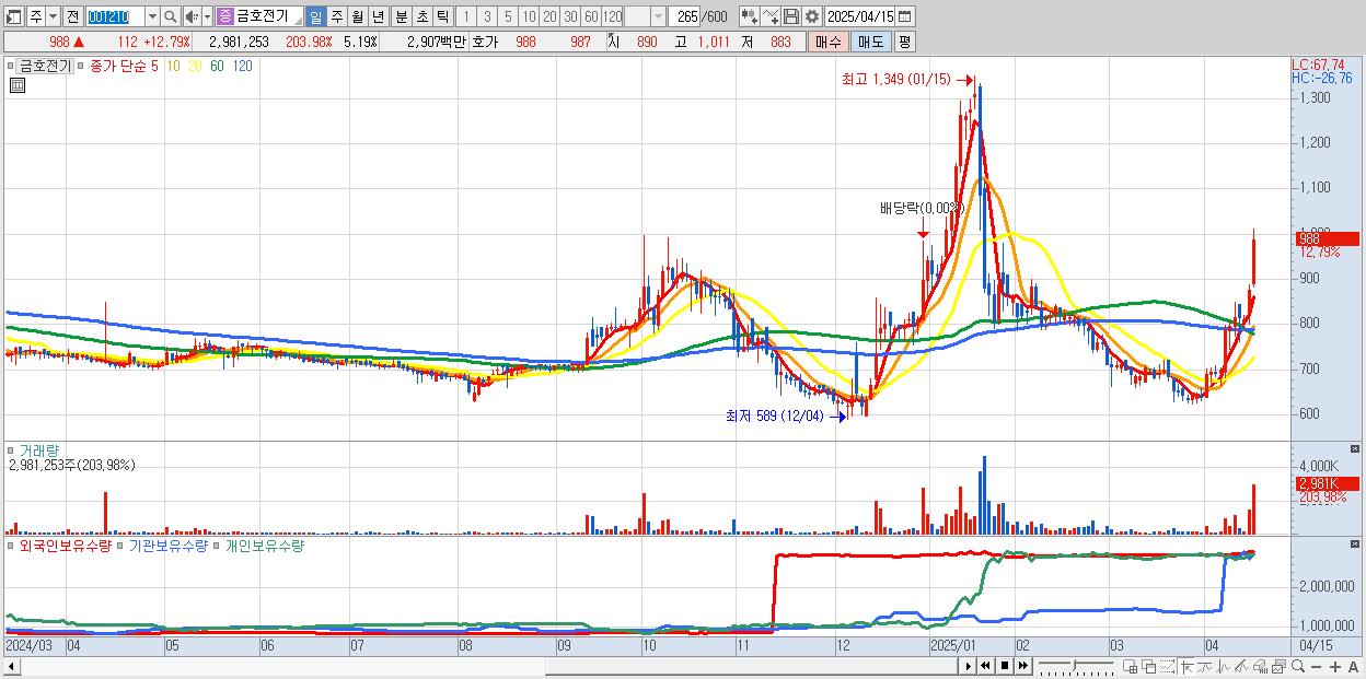 29.금호전기 988원 ▲ 12.79% (KOSPI, 001210)