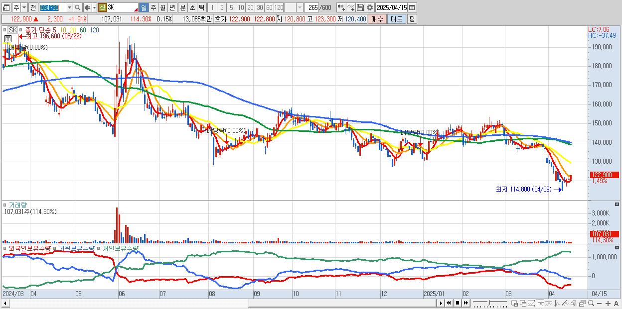- SK (122,900원 ▲ 1.91% , 시총: 89,106억, 외국인 순매수 거래금:33억)