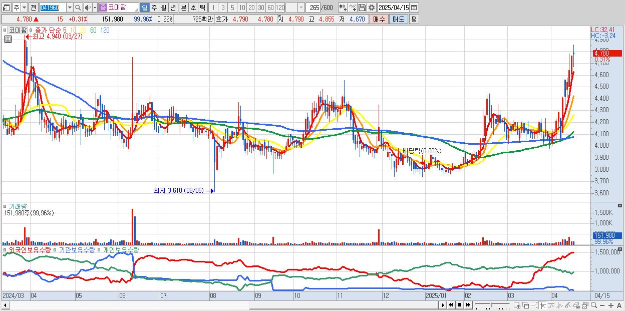 코미팜 4,780원 ▲ 0.31% (KOSDAQ, 041960)