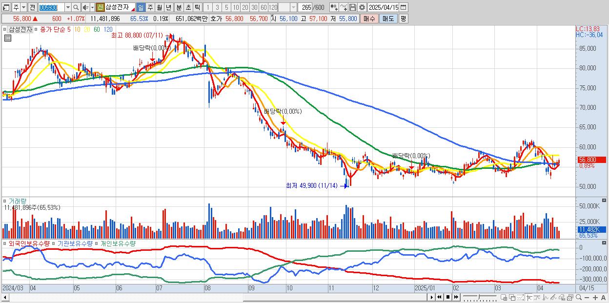 1.삼성전자 56,600원 ▲ 0.71% (KOSPI, 005930)