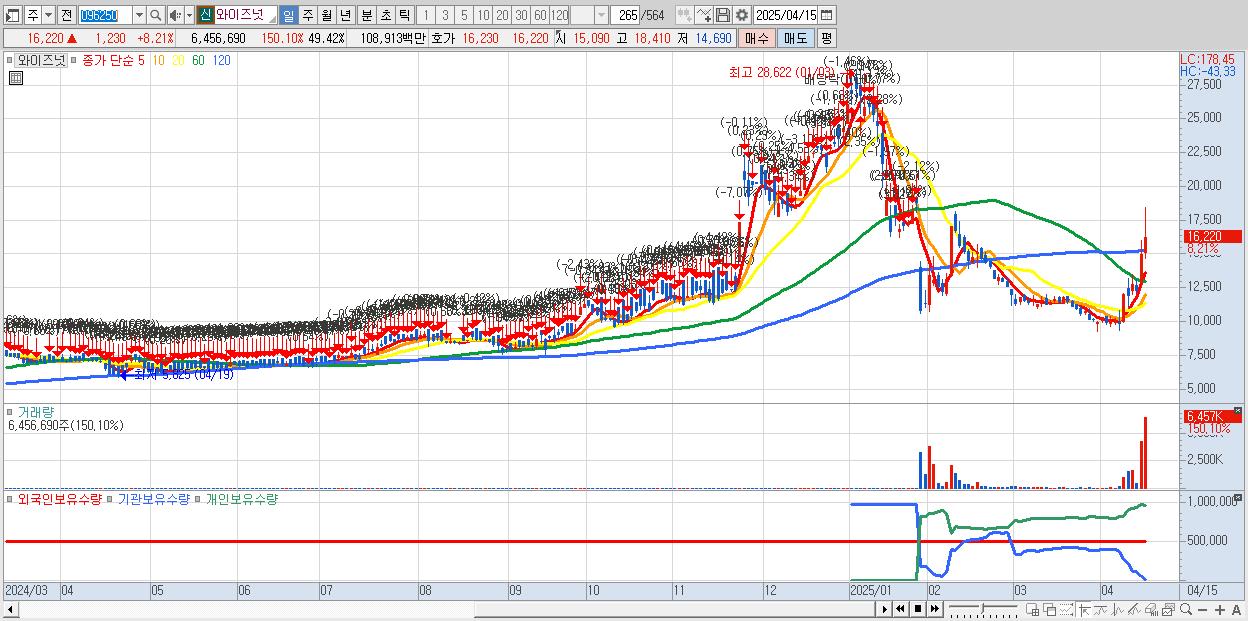 - 와이즈넛 (16,220원 ▲ 8.21% , 시총: 2,119억, 거래량: 6,456,690, 거래대금:1,089억)