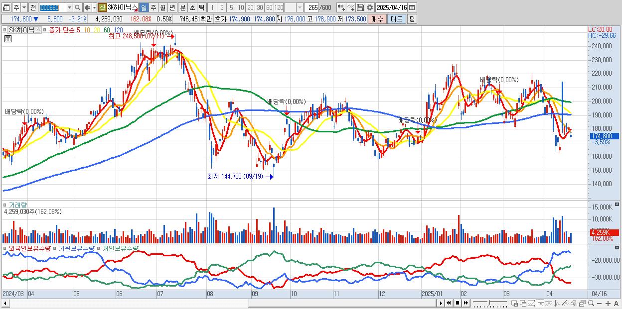 2.SK하이닉스 174,000원 ▼ -3.65% (KOSPI, 000660)