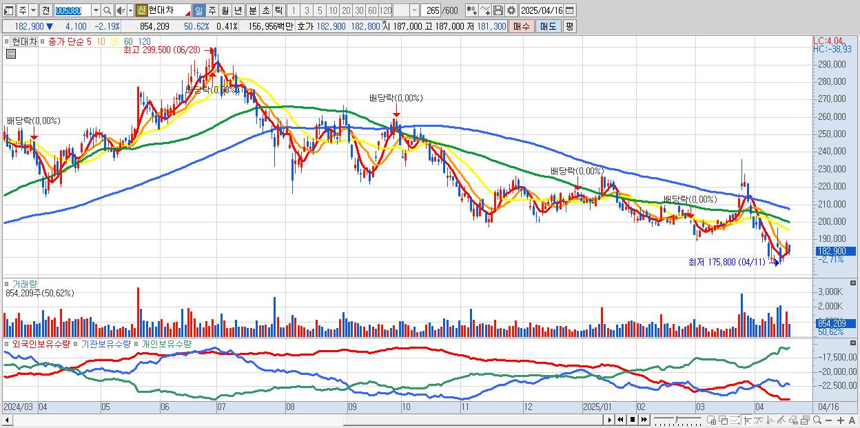 - 현대차 (181,700원 ▼ -2.83% , 시총: 380,509억, 거래량: 593,391, 거래대금:1,090억)