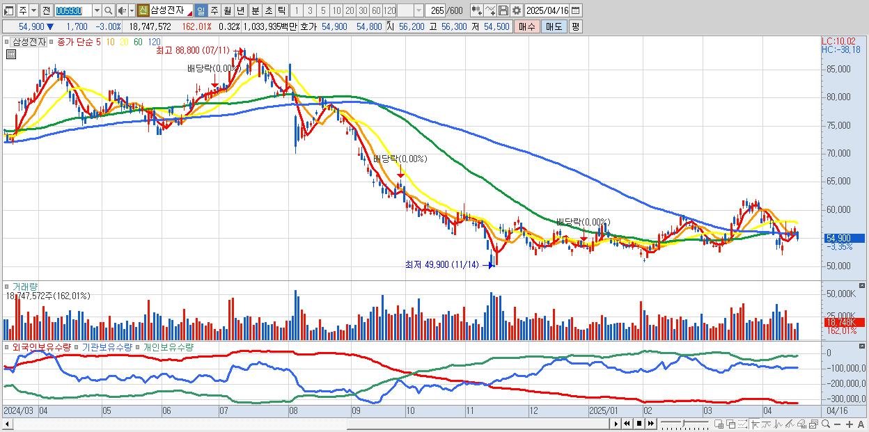 1.삼성전자 54,700원 ▼ -3.36% (KOSPI, 005930)