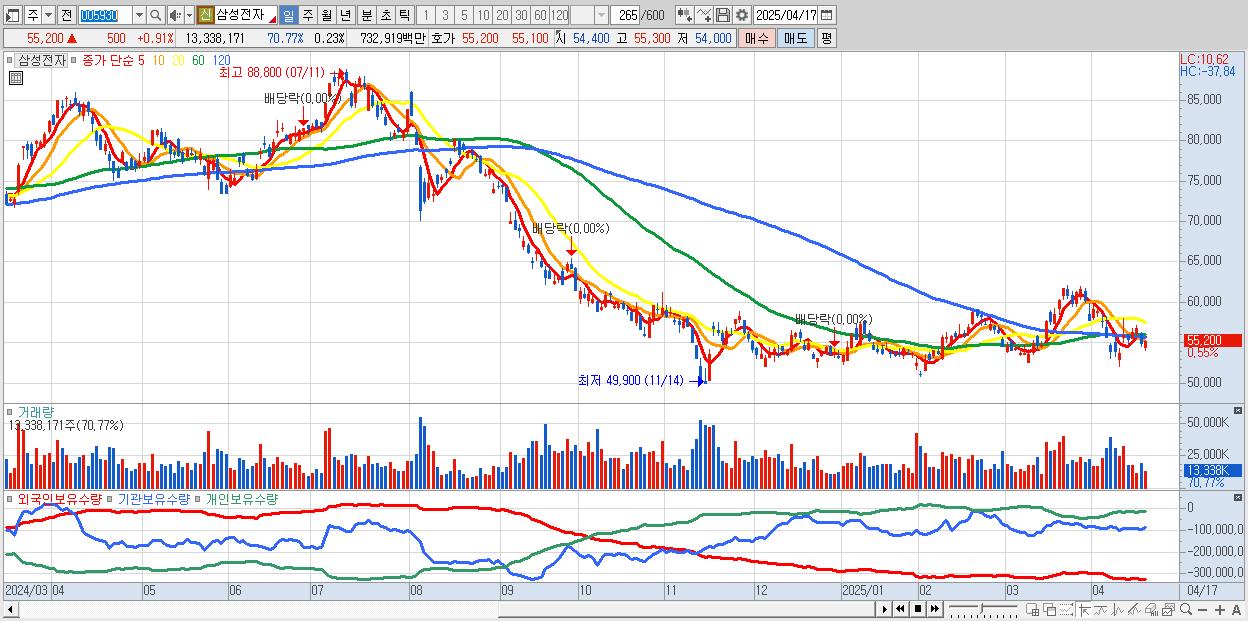 1.삼성전자 55,100원 ▲ 0.73% (KOSPI, 005930)