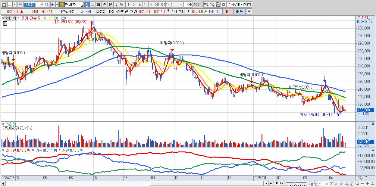 - 현대차 (181,700원 0% , 시총: 380,509억, 거래량: 522,233, 거래대금:955억)