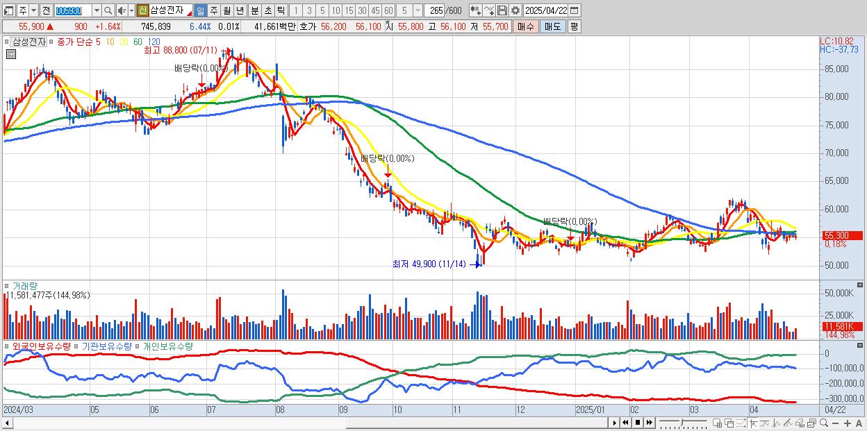 1.삼성전자 55,000원 ▼ -0.72% (KOSPI, 005930)