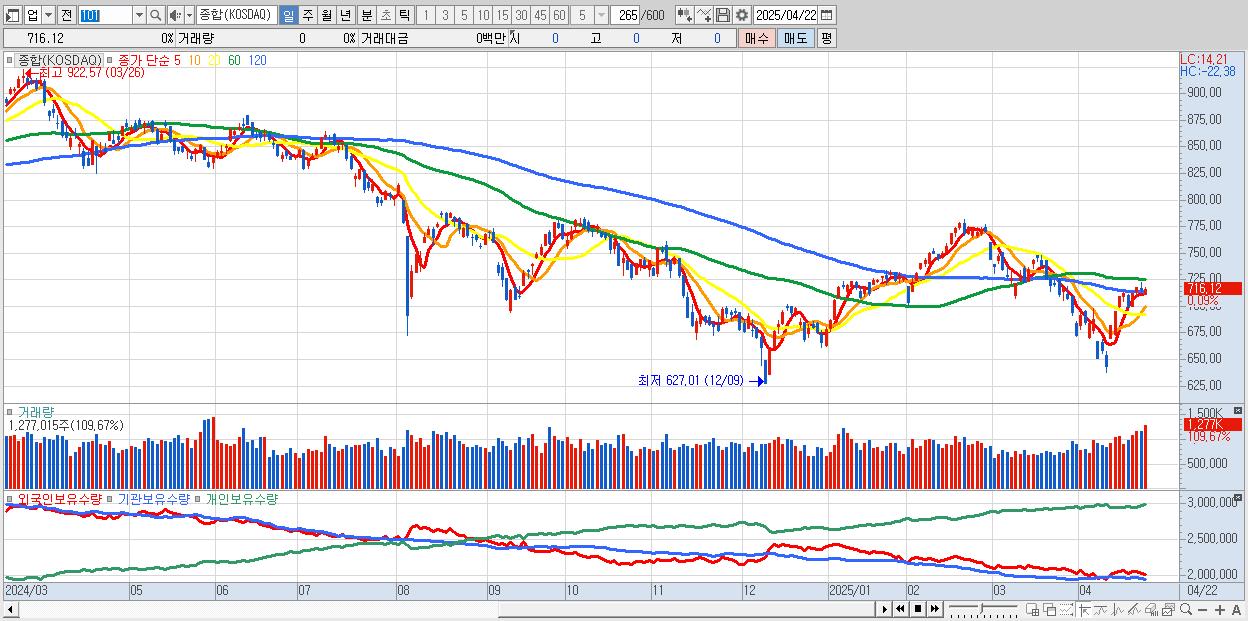 | 04/22 | 716.12 | ▲0.09% | 246억 | -126억 | 68억 | -189억 |