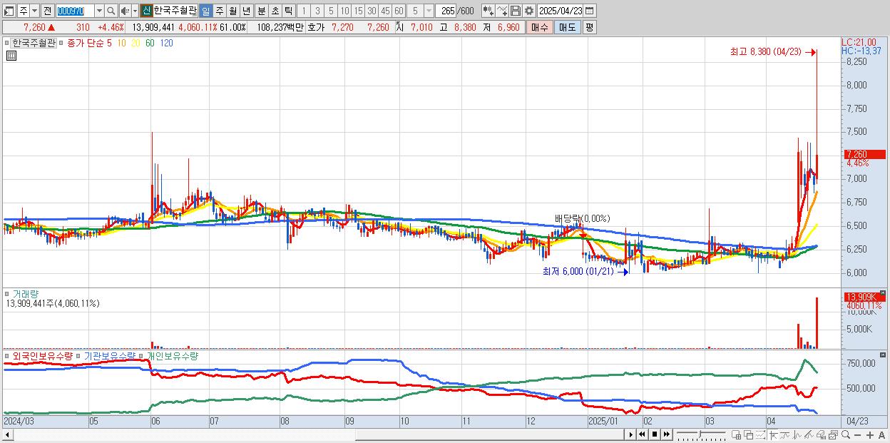 - 한국주철관 (7,260원 ▲ 4.46% , 시총: 1,655억, 거래량: 13,909,441, 거래대금:1,082억)