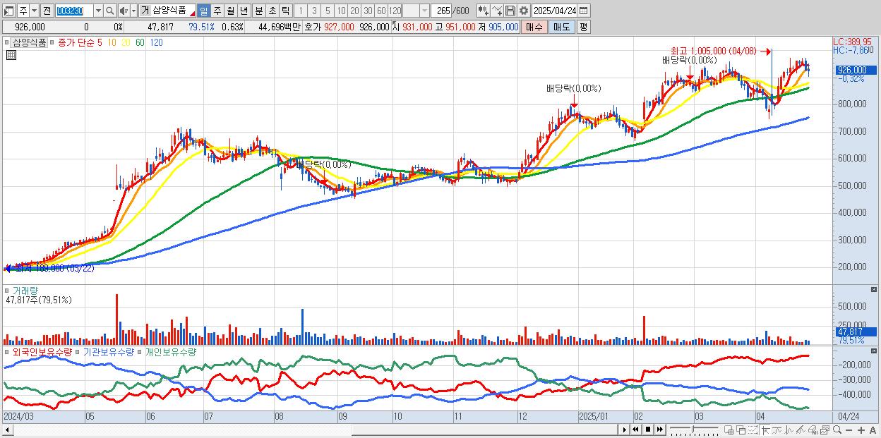 - 삼양식품 (929,000원 ▲ 0.32% , 시총: 69,982억, 외국인 순매수 거래금:149억)
