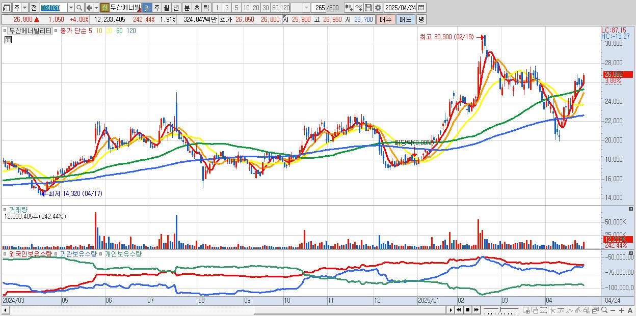 2.두산에너빌리티 26,900원 ▲ 4.47% (KOSPI, 034020)