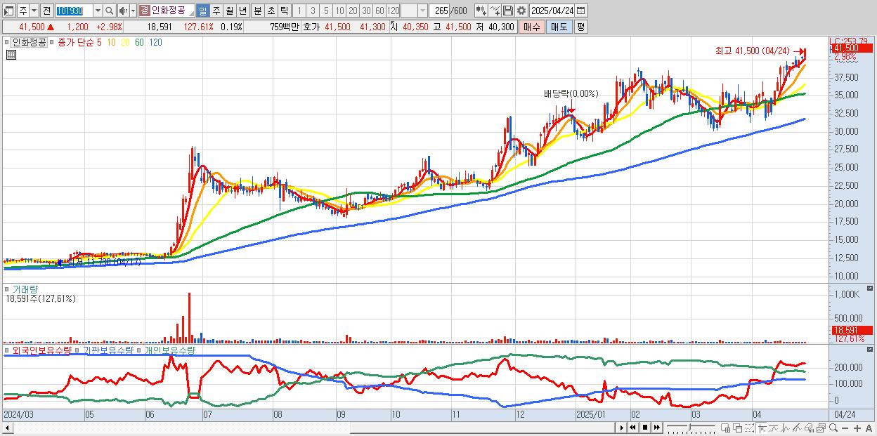 - 인화정공 (41,500원 ▲ 2.98% , 시총: 3,991억, 거래량: 18,591, 거래대금:8억, KOSDAQ)